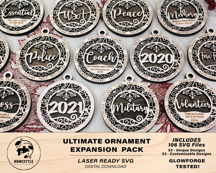 106 FILE EXPANSION Ultimate Christmas Ornament Bundle - SVG File Download - Sized for Glowforge - Christmas Decor