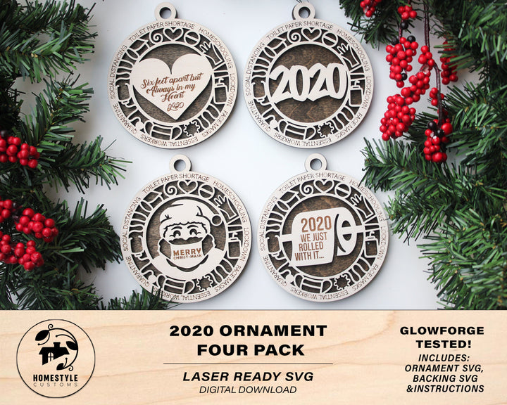 2020 Commemorative Ornament 4 Pack - SVG File Download - Sized for Glowforge - Christmas Decor