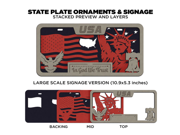 Our State plate Ornaments and Signage are a great way to take pride and showcase what your home state has to offer. Each state has a three unique layers that display some of the most popular landmarks and landscapes found within your state. In total there are 54 ornaments & 54 Signage designs in which you can fill your Christmas tree or place anywhere in your decor. At Homestyle Customs we are pride ourselves on delivering you quality & sellable products with the marketing support to back it up. Included in your purchase is our professional photos, marketing sell sheets & promotional Video for you to use at your discretion to save time, make sales and look professional in front of your customers.