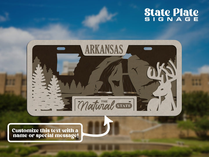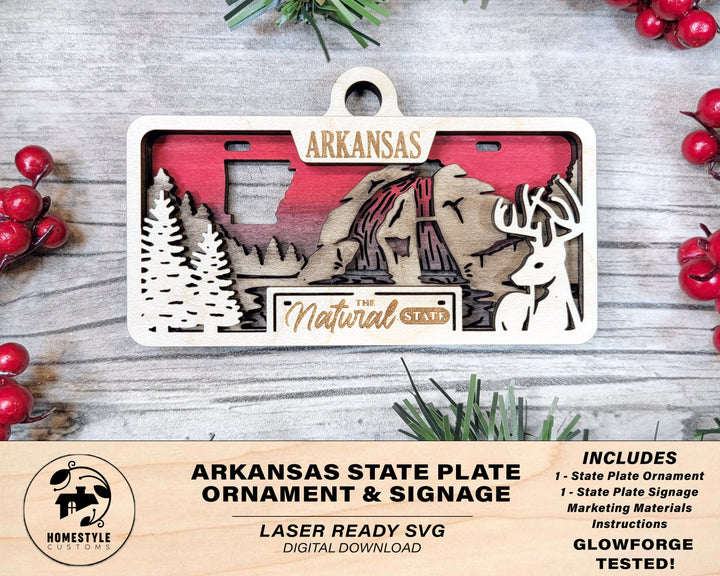 Arkansas State Plate Ornament and Signage - SVG File Download - Sized for Glowforge - Laser Ready Digital Files