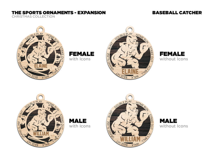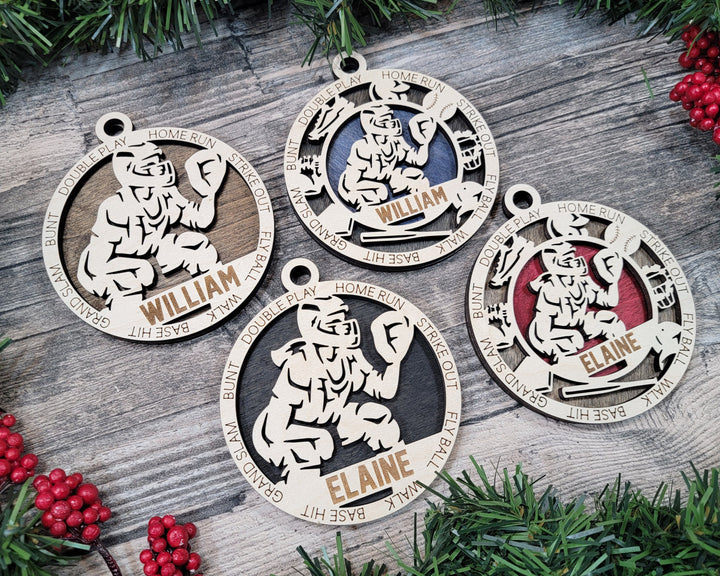 4 - Back Catcher ornaments (Sized at 4") Includes 2 styles and a male and female variation. See product photos for everything included.