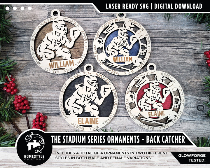 Back Catcher - Stadium Series Ornaments - 4 Unique designs - SVG, PDF, AI File Download - Sized for Glowforge