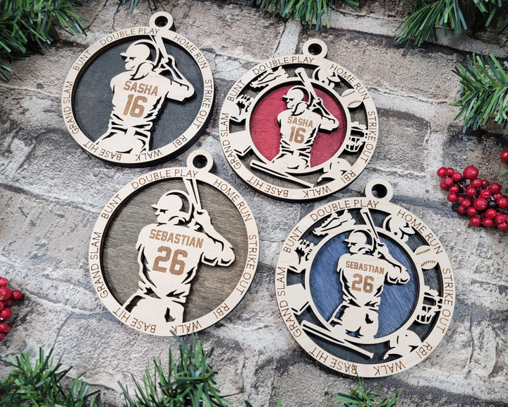 4 - Baseball ornaments (Sized at 4") Includes 2 styles and a male and female variation. See product photos for everything included.