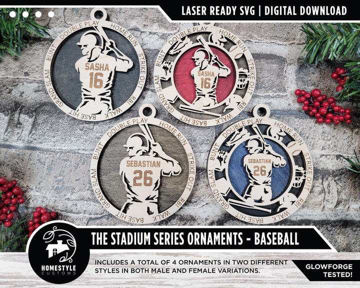 Baseball - Stadium Series Ornaments - 4 Unique designs - SVG, PDF, AI File Download - Sized for Glowforge