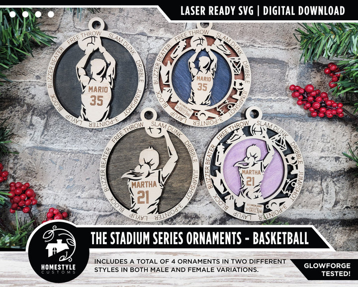 Basketball - Stadium Series Ornaments - 4 Unique designs - SVG, PDF, AI File Download - Sized for Glowforge