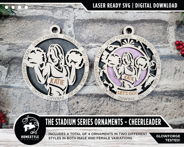 Cheerleading - Stadium Series Ornaments - 4 Unique designs - SVG, PDF, AI File Download - Sized for Glowforge
