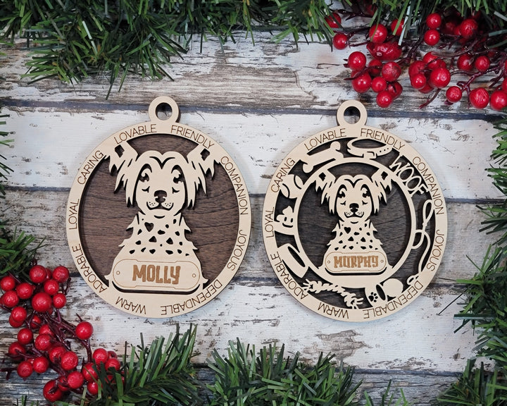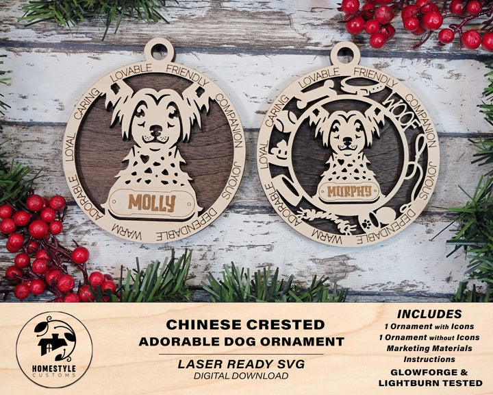 Chinese Crested - Adorable Dog Ornaments - 2 Ornaments included - SVG, PDF, AI File Download - Sized for Glowforge