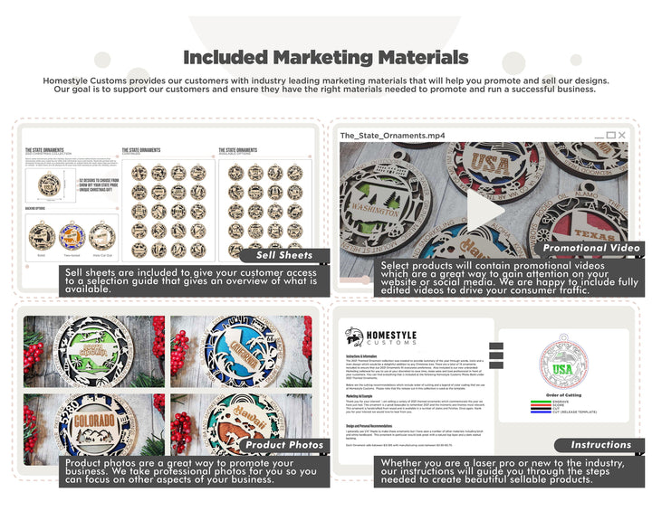 The Cockapoo Dog Ornament features two different versions (Icon and non Icon version) that can personalized with you your dogs name or a special message. This ornament is a great keepsake and a way to always cherish your dog during the holidays. At Homestyle Customs we are pride ourselves on delivering you quality & sellable products with the marketing support to back it up. Included in your purchase is our professional photos, Rendered sheets and marketing sell sheets for you to use at your discretion to save time, make sales and look professional in front of your customers.