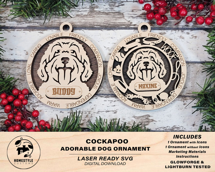 Cockapoo - Adorable Dog Ornaments - 2 Ornaments included - SVG, PDF, AI File Download - Sized for Glowforge