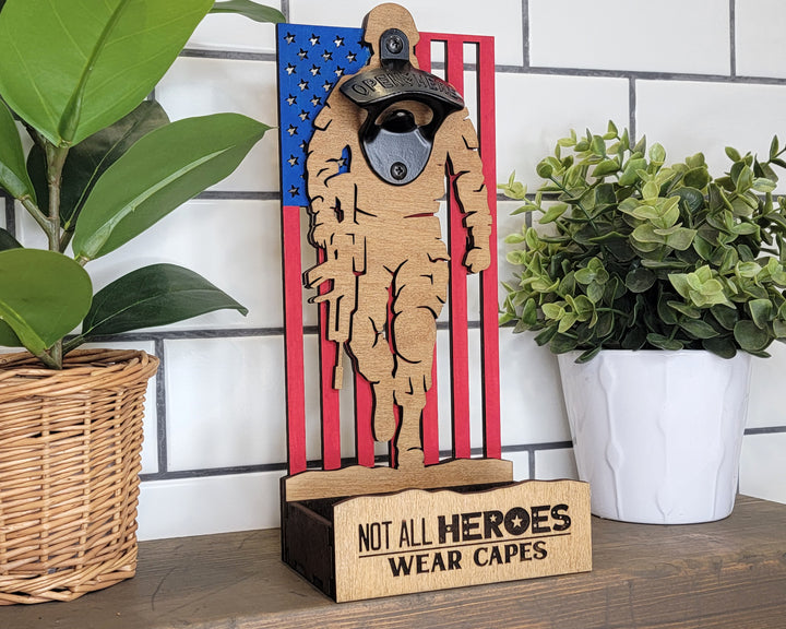 Introducing the Dad's Bottle Opener Bundle Laser Designs, a fun collection of bottle openers tailored to Dad's favorite hobbies. Choose from options for fishing, golf, hunting, military, football, baseball, and, of course, beer. Whether he's reeling in a catch, hitting the greens, watching the game, serving his country, swinging for the fences, or simply enjoying a cold one, this bundle has the perfect opener. Each bottle opener is hand crafted with premium materials, ensuring durability and ease of use. Give your dad the ultimate gift that allows him to crack open a cold beverage while celebrating his passions.