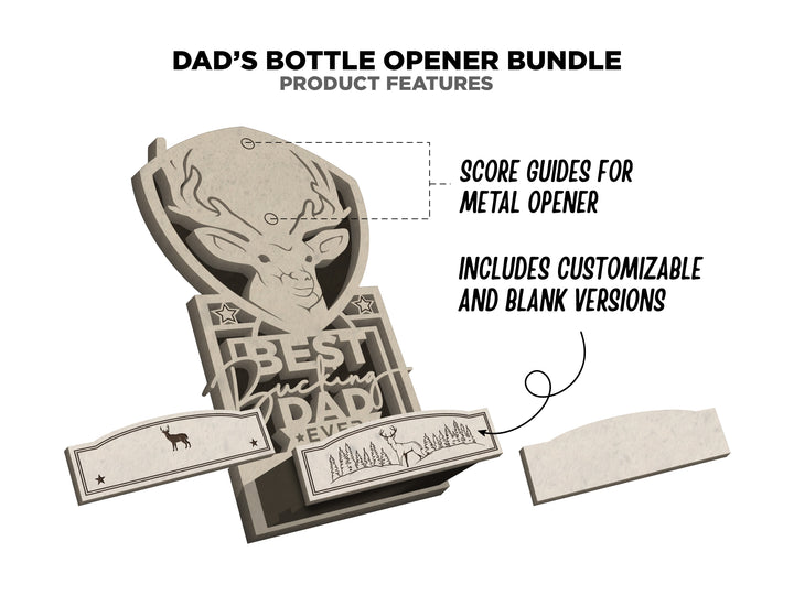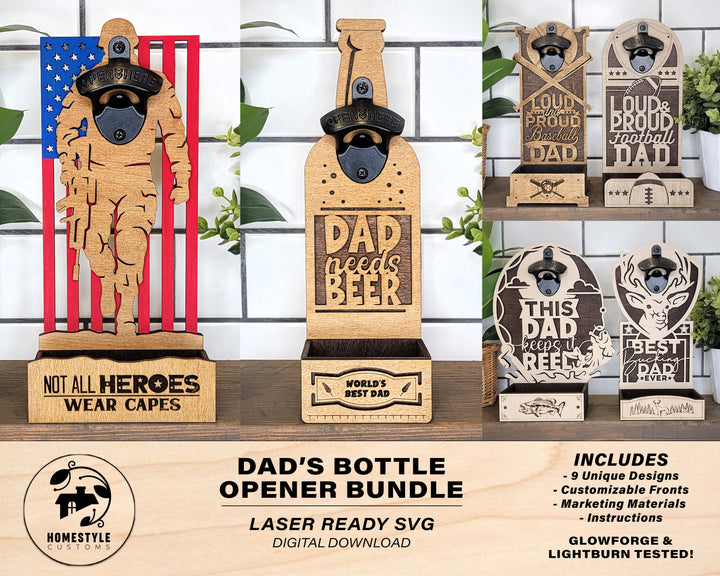 Dad's Bottle Opener Bundle - Includes 8 Bottle Opener Laser Designs - Tested on Glowforge & Lightburn