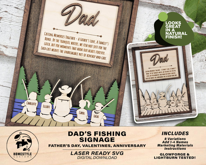 Dad’s Fishing Laser Design Signage - 1-4 Name - 8 variations of 'Dad' - Tested on Glowforge, Xtool & Lightburn