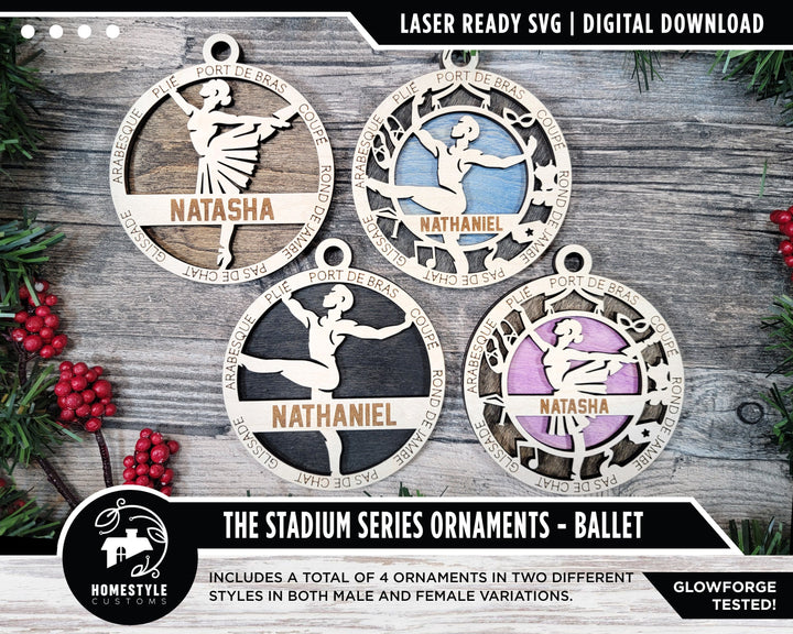 Dance Ballet - Stadium Series Ornaments - 4 Unique designs - SVG, PDF, AI File Download - Sized for Glowforge