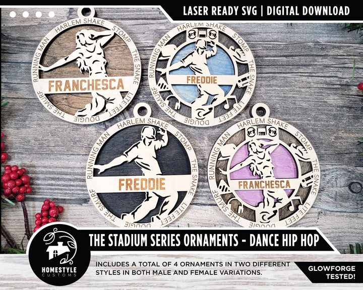 Dance HipHop - Stadium Series Ornaments - 4 Unique designs - SVG, PDF, AI File Download - Sized for Glowforge