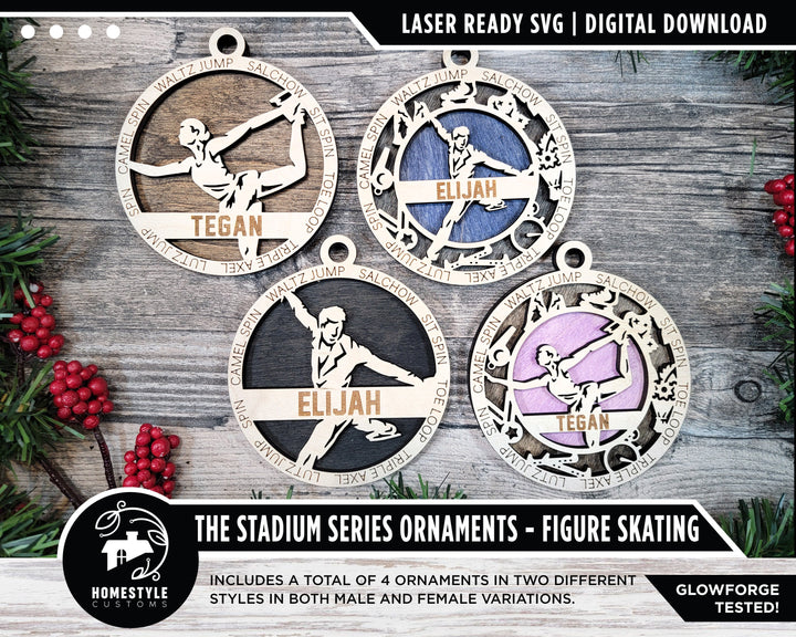 Figure Skating - Stadium Series Ornaments - 4 Unique designs - SVG, PDF, AI File Download - Sized for Glowforge