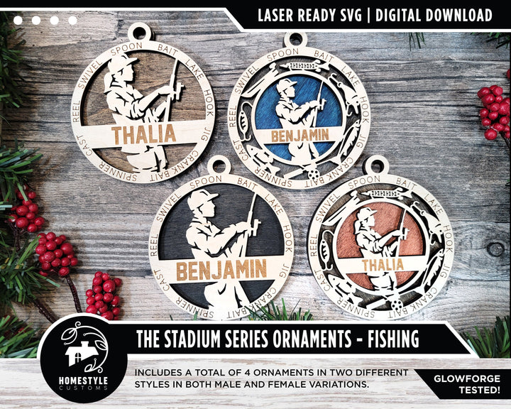 Fishing - Stadium Series Ornaments - 4 Unique designs - SVG, PDF, AI File Download - Sized for Glowforge
