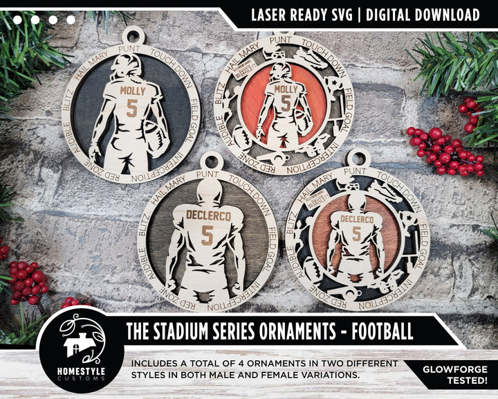 Football - Stadium Series Ornaments - 4 Unique designs - SVG, PDF, AI File Download - Sized for Glowforge