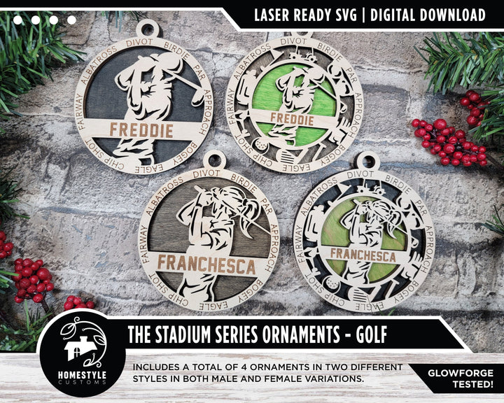 Golf - Stadium Series Ornaments - 4 Unique designs - SVG, PDF, AI File Download - Sized for Glowforge