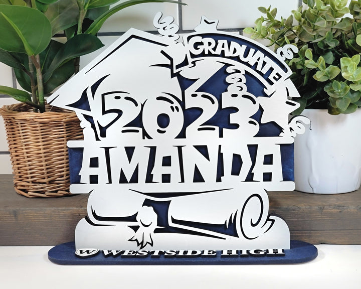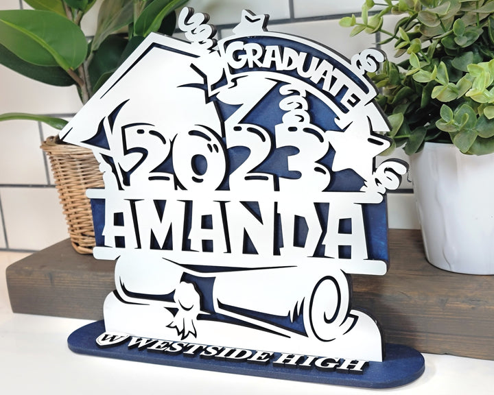The Graduation Sign was designed to be a customizable gift for those that are celebrating a graduation. This file can be customized with any name you choose in the centre by uniting or welding the text with your editing software. There is also and additional customization area on the base of the sign to add a special message or school logo.