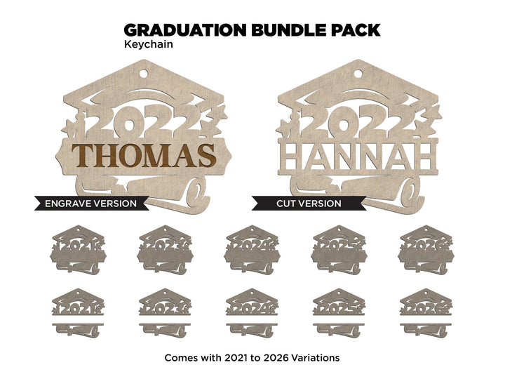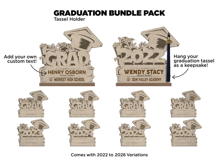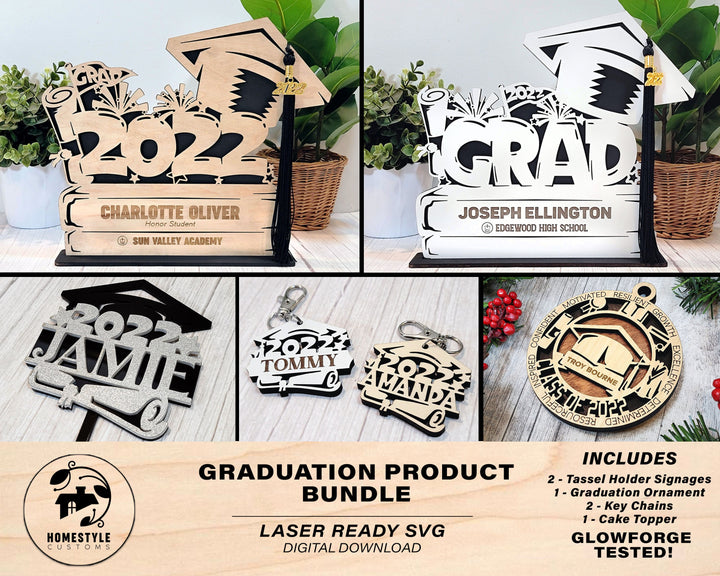 Graduation Product Bundle - Tassel Holder Sign, Ornament, Key Chain, Cake Topper - SVG File Download - Sized & Tested in Glowforge