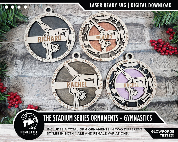 Gymnastics - Stadium Series Ornaments - 4 Unique designs - SVG, PDF, AI File Download - Sized for Glowforge