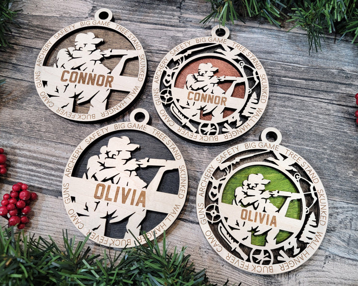 4 - Hunting ornaments (Sized at 4") Includes 2 styles and a male and female variation. See product photos for everything included.
