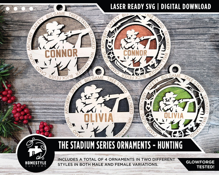 Hunting - Stadium Series Ornaments - 4 Unique designs - SVG, PDF, AI File Download - Sized for Glowforge