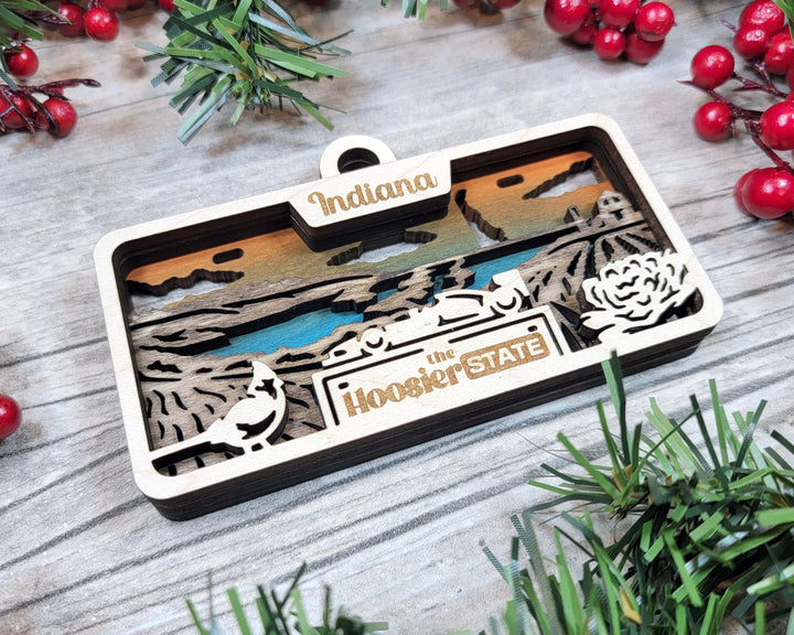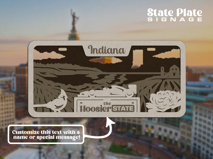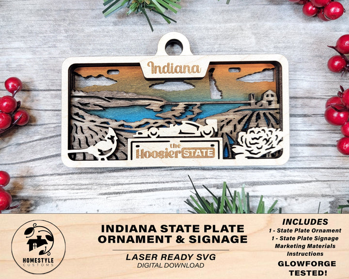 Indiana State Plate Ornament and Signage - SVG File Download - Sized for Glowforge - Laser Ready Digital Files