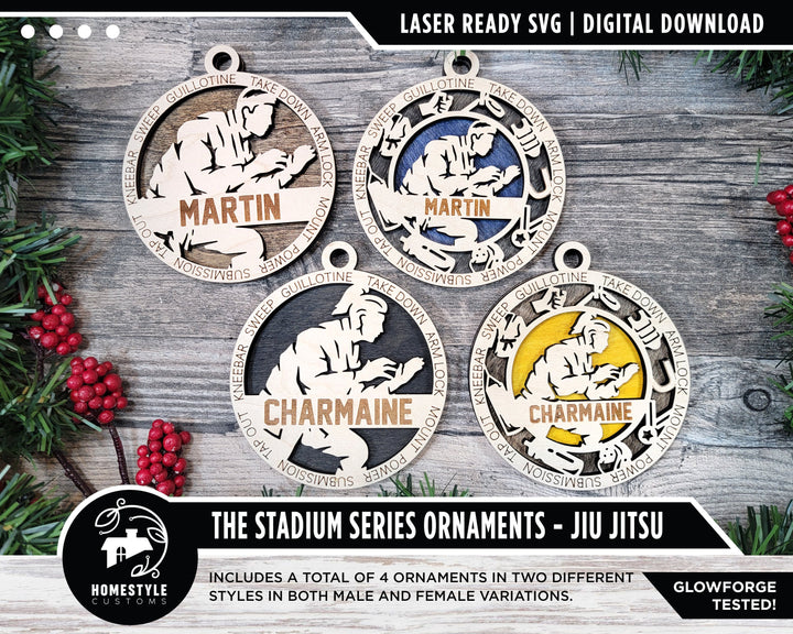 Jiu Jitsu - Stadium Series Ornaments - 4 Unique designs - SVG, PDF, AI File Download - Sized for Glowforge
