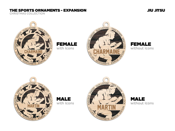 4 - Jiu Jitsu ornaments (Sized at 4") Includes 2 styles and a male and female variation. See product photos for everything included.