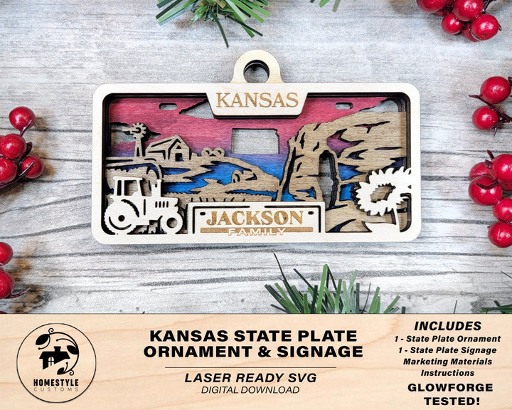 Kansas State Plate Ornament and Signage - SVG File Download - Sized for Glowforge - Laser Ready Digital Files