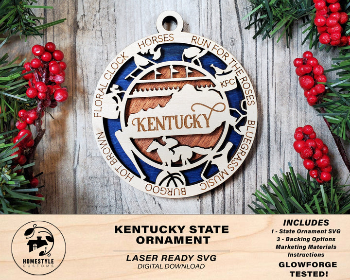 Kentucky State Ornament - SVG File Download - Sized for Glowforge - Laser Ready Digital Files