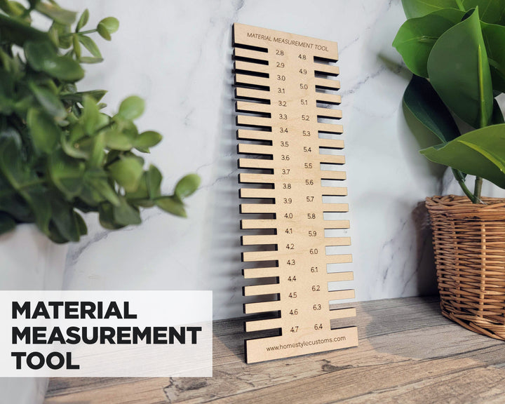 Need to measure your material accurately? Download our measurement tool and use the slots to find the width. It'll help you pick the right file size for your Homestyle Custom project.