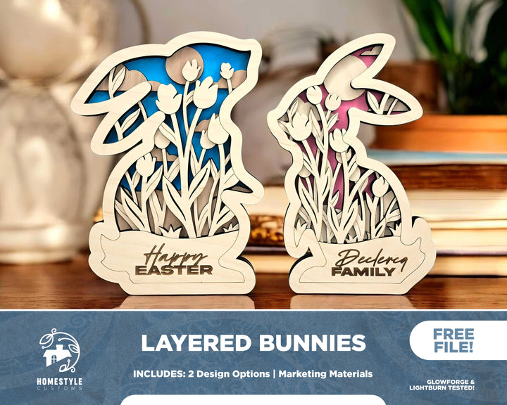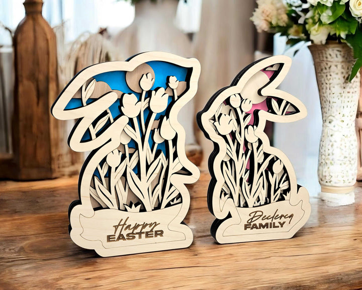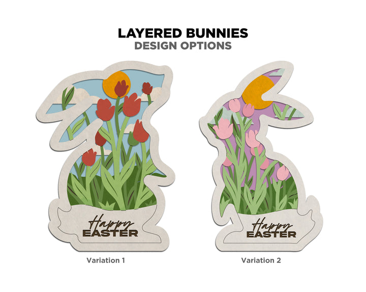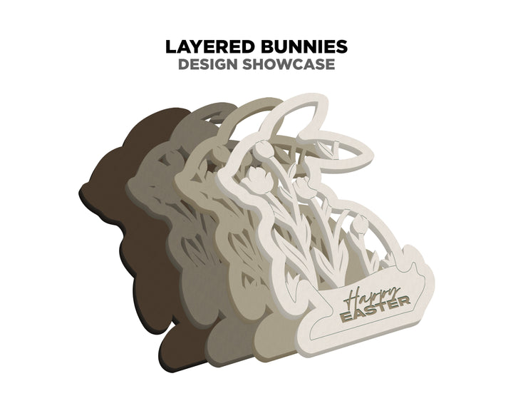 Layered Bunnies - Easter Signage - SVG, PDF, AI File types - Works With All Lasers
