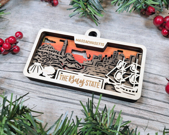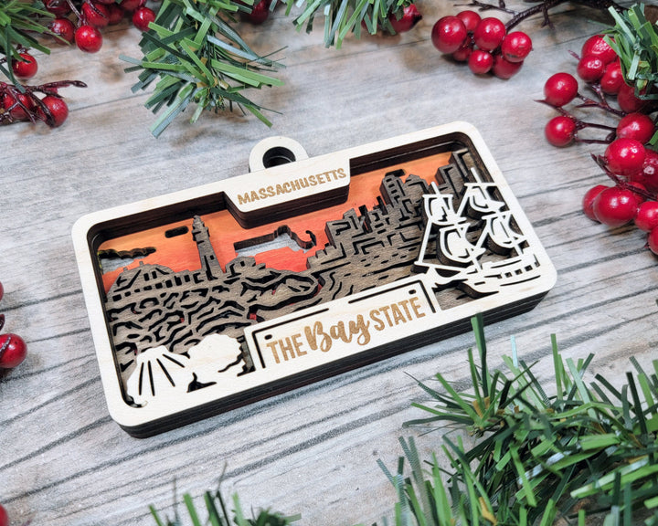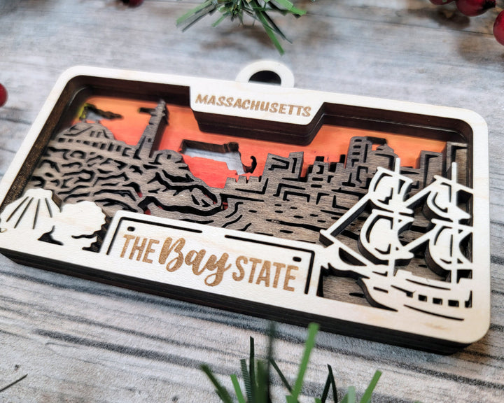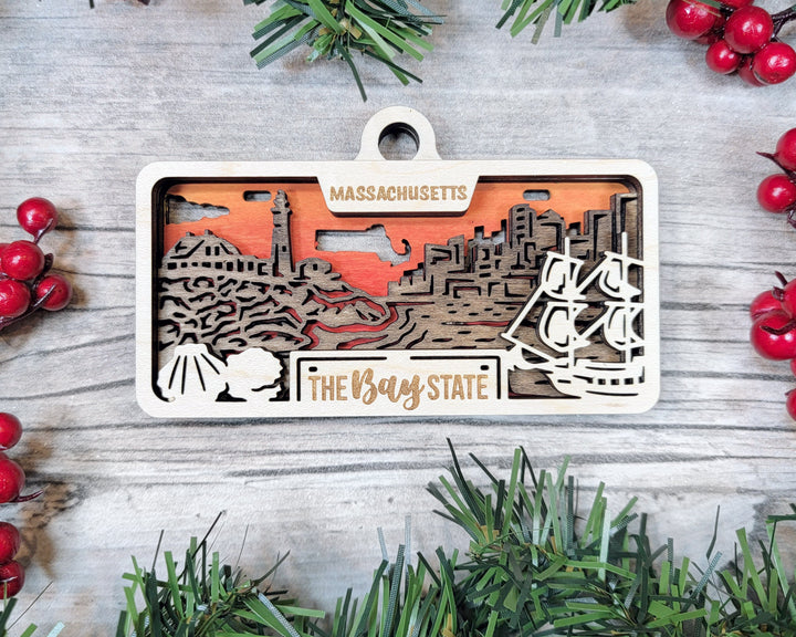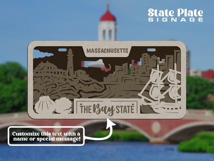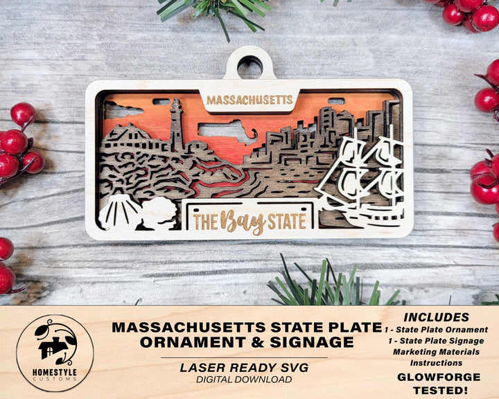 Massachusetts State Plate Ornament and Signage - SVG File Download - Sized for Glowforge - Laser Ready Digital Files