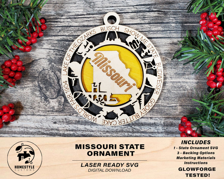 Missouri State Ornament - SVG File Download - Sized for Glowforge - Laser Ready Digital Files