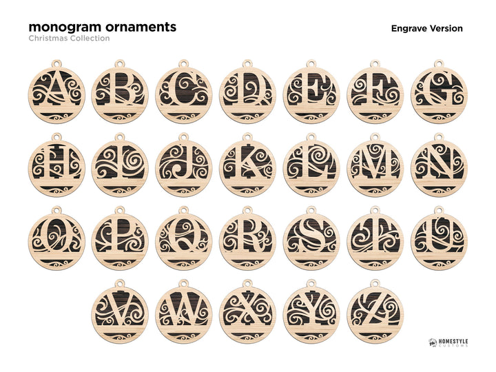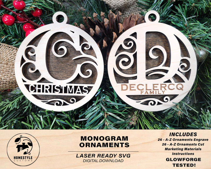 Monogram Ornament Bundle - A-Z in Two Styles - 48 Designs - SVG File Download - Sized for Glowforge