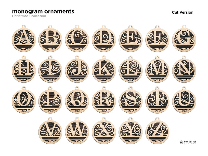 26 - A-Z Cut Version ornaments SVG Files (Sized at 4") - full listing of whats included can be found in the listing photos
