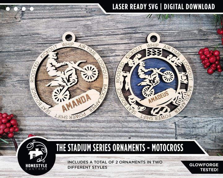 Motorcross - Stadium Series Ornaments - 2 Unique designs - SVG, PDF, AI File Download - Sized for Glowforge