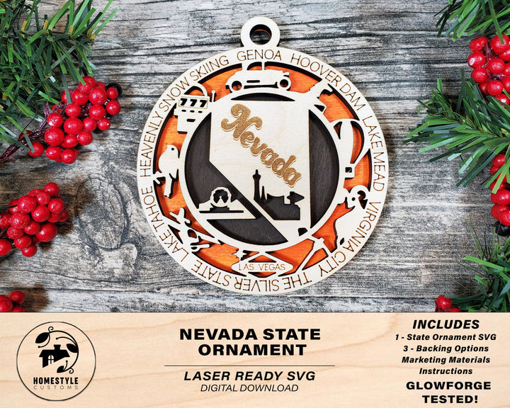 Nevada State Ornament - SVG File Download - Sized for Glowforge - Laser Ready Digital Files