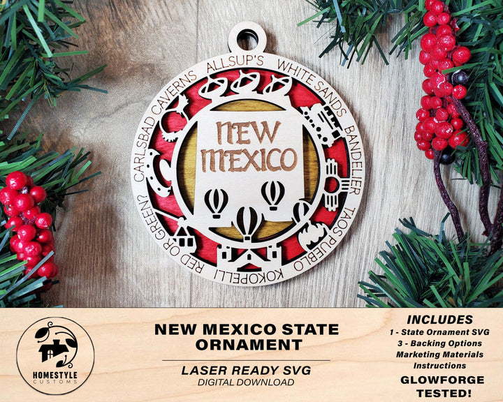 New Mexico State Ornament - SVG File Download - Sized for Glowforge - Laser Ready Digital Files
