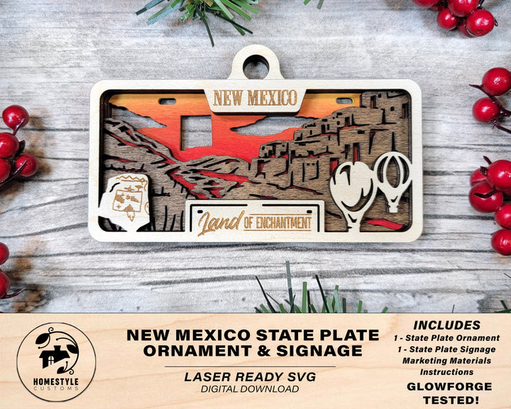 New Mexico State Plate Ornament and Signage - SVG File Download - Sized for Glowforge - Laser Ready Digital Files