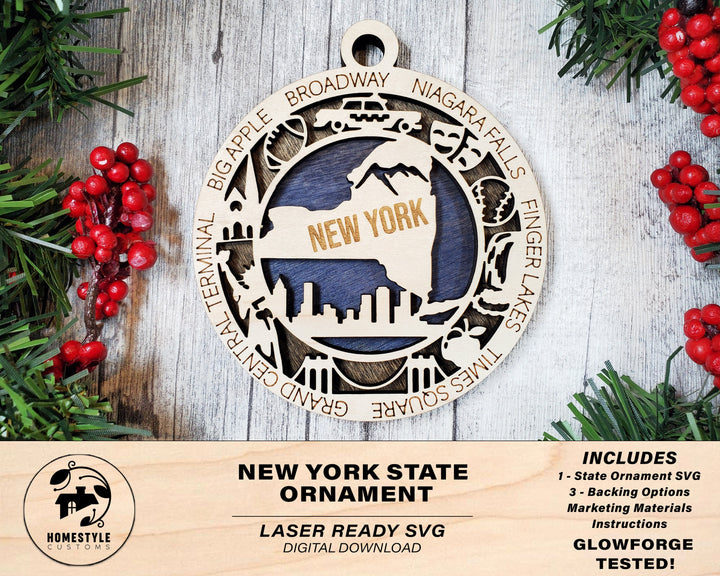 New York State Ornament - SVG File Download - Sized for Glowforge - Laser Ready Digital Files