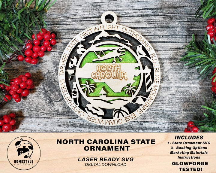 North Carolina State Ornament - SVG File Download - Sized for Glowforge - Laser Ready Digital Files