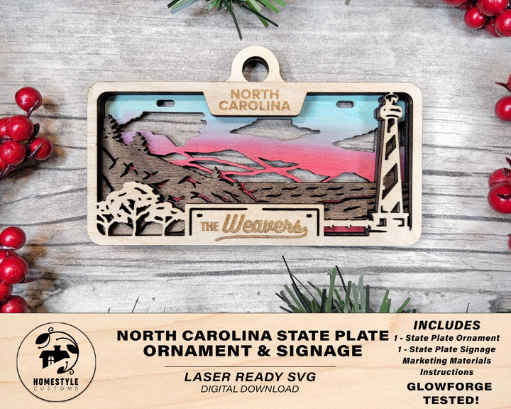 North Carolina State Plate Ornament and Signage - SVG File Download - Sized for Glowforge - Laser Ready Digital Files