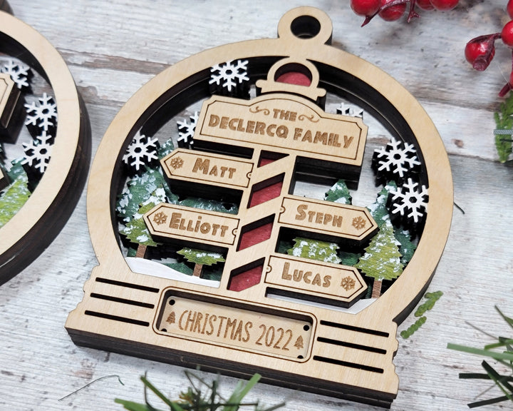 1 - Snow Globe stand up sign Sized at 5.4" - 4 layer design - Fits 2 to 6 Names (See product photos for included designs)