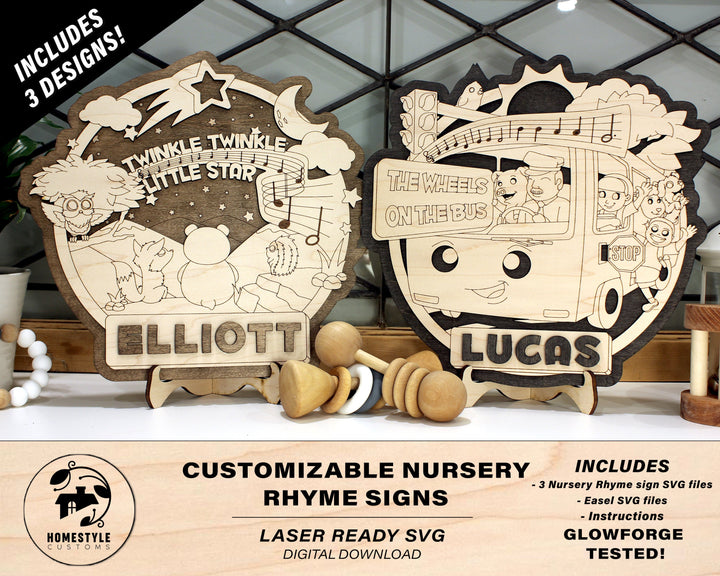 Nursery Rhyme Signs - Customizable - SVG File Download - Sized for Glowforge