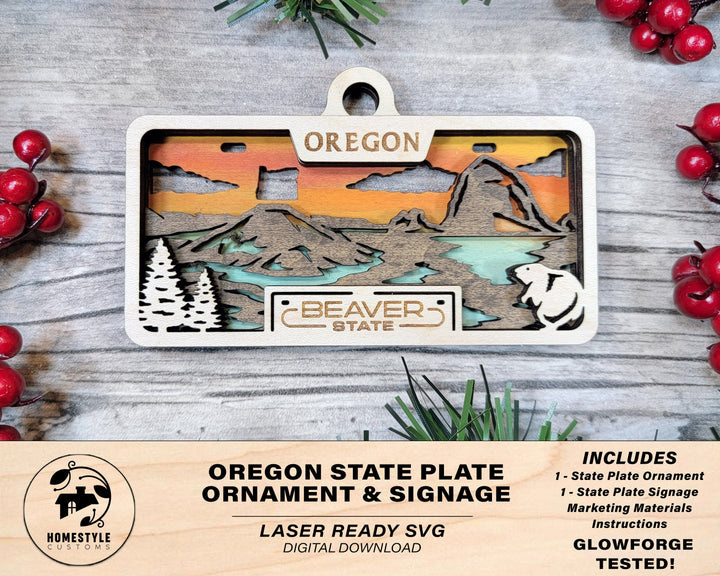 Oregon State Plate Ornament and Signage - SVG File Download - Sized for Glowforge - Laser Ready Digital Files