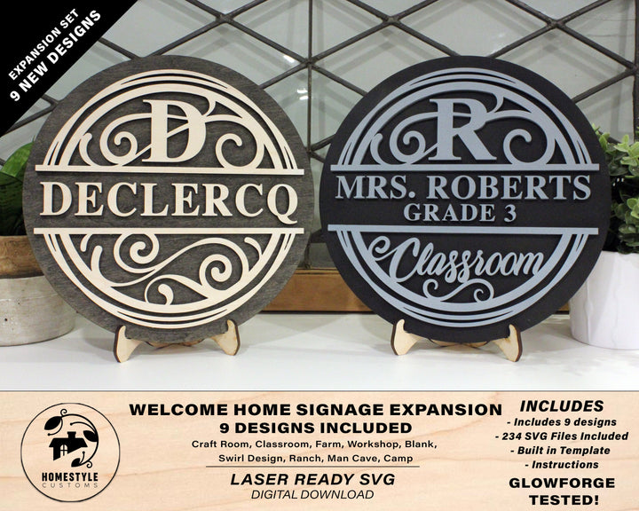 Personalized Home Signage Expansion Set - 9 Designs Included - 234 files - Built in Template - SVG File Download - Sized for Glowforge