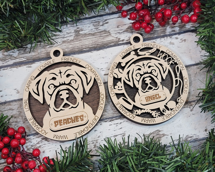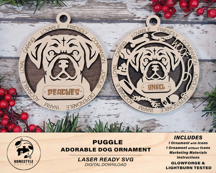 Puggle - Adorable Dog Ornaments - 2 Ornaments included - SVG, PDF, AI File Download - Sized for Glowforge